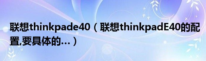 大家好,小常来为大家解答以上问题。联想thinkpade40,联想thinkpadE40的配置,要具体的…很多人还不知道,现在让我们一起来看看吧!