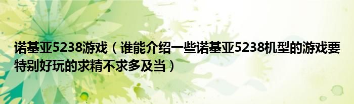 大家好,小常来为大家解答以上问题。诺基亚5238游戏,谁能介绍一些诺基亚5238机型的游戏要特别好玩的求精不求多及当很多人还不知道,现在让我们一起来看看吧!