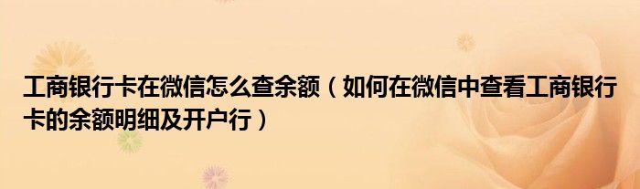 大家好,小太来为大家解答以上问题。工商银行卡在微信怎么查余额,如何在微信中查看工商银行卡的余额明细及开户行很多人还不知道,现在让我们一起来看看吧!