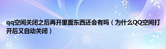 大家好,小太来为大家解答以上问题。qq空间关闭之后再开里面东西还会有吗,为什么QQ空间打开后又自动关闭很多人还不知道,现在让我们一起来看看吧!