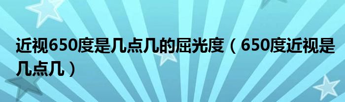 大家好,linda来为大家解答以上的问题。近视650度是几点几的屈光度,650度近视是几点几很多人还不知道,现在让我们一起来看看吧!