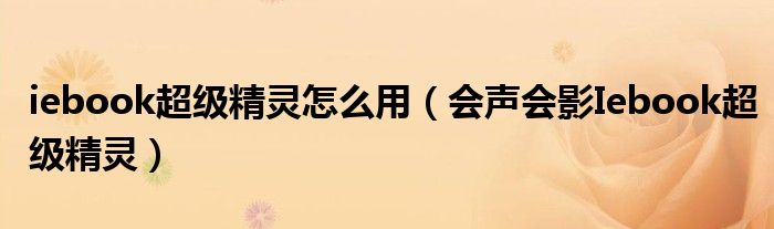 大家好,小太来为大家解答以上问题。iebook超级精灵怎么用,会声会影Iebook超级精灵很多人还不知道,现在让我们一起来看看吧!