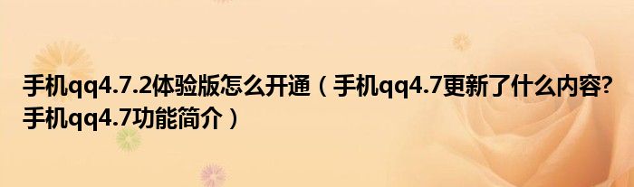 大家好,小太来为大家解答以上问题。手机qq4.7.2体验版怎么开通,手机qq4.7更新了什么内容?手机qq4.7功能简介很多人还不知道,现在让我们一起来看看吧!
