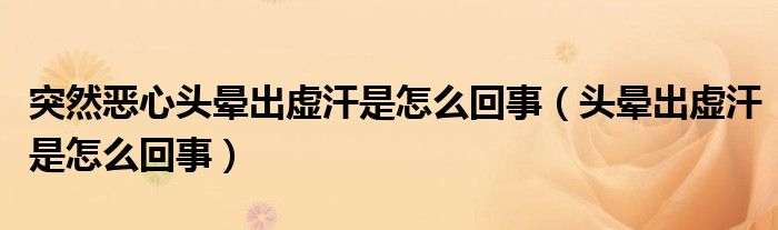 大家好,linda来为大家解答以上的问题。突然恶心头晕出虚汗是怎么回事,头晕出虚汗是怎么回事很多人还不知道,现在让我们一起来看看吧!