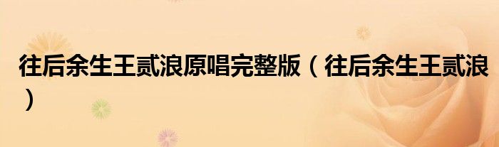 大家好,雨雨来为大家解答以上问题,往后余生王贰浪原唱完整版,往后余生王贰浪很多人还不知道,现在让我们一起来看看吧!