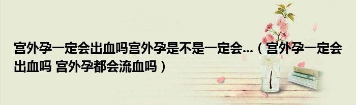 大家好,linda来为大家解答以上的问题。宫外孕一定会出血吗宫外孕是不是一定会...,宫外孕一定会出血吗 宫外孕都会流血吗很多人还不知道,现在让我们一起来看看吧!