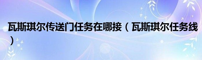 大家好,雨雨来为大家解答以上问题,瓦斯琪尔传送门任务在哪接,瓦斯琪尔任务线很多人还不知道,现在让我们一起来看看吧!