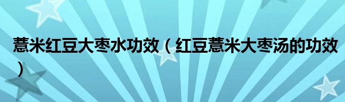 大家好,linda来为大家解答以上的问题。薏米红豆大枣水功效,红豆薏米大枣汤的功效很多人还不知道,现在让我们一起来看看吧!