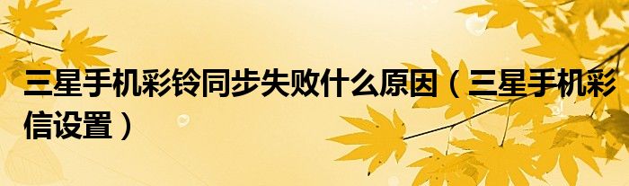 大家好,雨雨来为大家解答以上问题,三星手机彩铃同步失败什么原因,三星手机彩信设置很多人还不知道,现在让我们一起来看看吧!