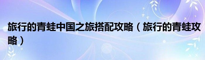 大家好,雨雨来为大家解答以上问题,旅行的青蛙中国之旅搭配攻略,旅行的青蛙攻略很多人还不知道,现在让我们一起来看看吧!
