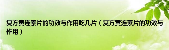 大家好,linda来为大家解答以上的问题。复方黄连素片的功效与作用吃几片,复方黄连素片的功效与作用很多人还不知道,现在让我们一起来看看吧!