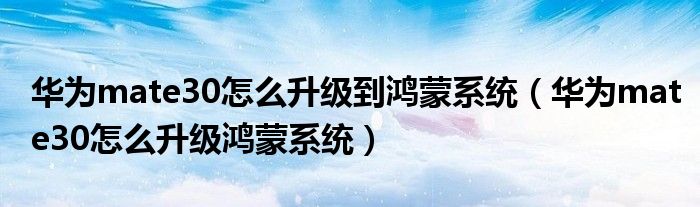 大家好,雨雨来为大家解答以上问题,华为mate30怎么升级到鸿蒙系统,华为mate30怎么升级鸿蒙系统很多人还不知道,现在让我们一起来看看吧!