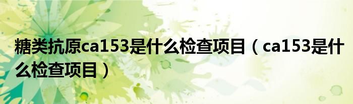 大家好,linda来为大家解答以上的问题。糖类抗原ca153是什么检查项目,ca153是什么检查项目很多人还不知道,现在让我们一起来看看吧!