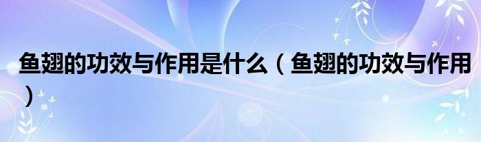 鱼翅的功效与作用是什么(鱼翅的功效与作用)