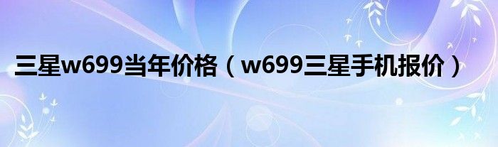 大家好,雨雨来为大家解答以上问题,三星w699当年价格,w699三星手机报价很多人还不知道,现在让我们一起来看看吧!