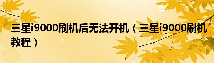 大家好,雨雨来为大家解答以上问题,三星i9000刷机后无法开机,三星i9000刷机教程很多人还不知道,现在让我们一起来看看吧!
