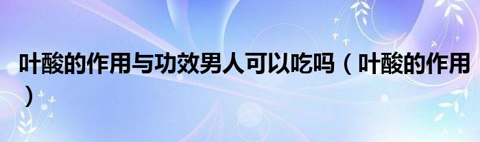 大家好,linda来为大家解答以上的问题。叶酸的作用与功效男人可以吃吗,叶酸的作用很多人还不知道,现在让我们一起来看看吧!