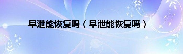 大家好,linda来为大家解答以上的问题。早泄能恢复吗,早泄能恢复吗很多人还不知道,现在让我们一起来看看吧!