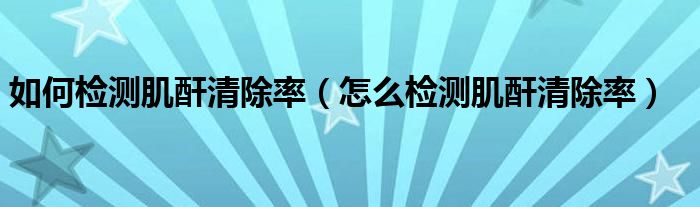 大家好,linda来为大家解答以上的问题。如何检测肌酐清除率,怎么检测肌酐清除率很多人还不知道,现在让我们一起来看看吧!