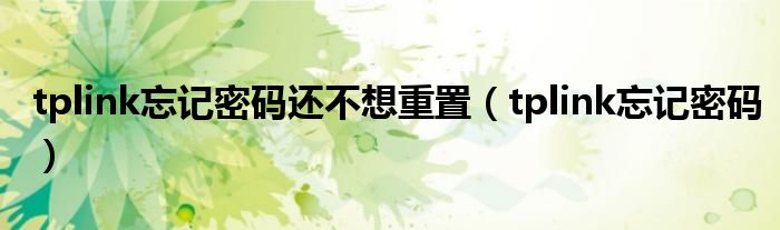 大家好,雨雨来为大家解答以上问题,tplink忘记密码还不想重置,tplink忘记密码很多人还不知道,现在让我们一起来看看吧!