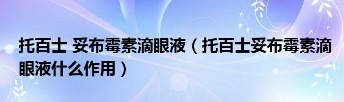 大家好,linda来为大家解答以上的问题。托百士 妥布霉素滴眼液,托百士妥布霉素滴眼液什么作用很多人还不知道,现在让我们一起来看看吧!