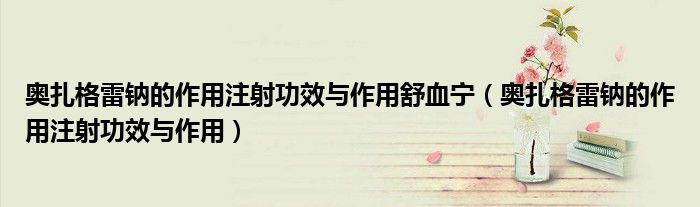大家好,linda来为大家解答以上的问题。奥扎格雷钠的作用注射功效与作用舒血宁,奥扎格雷钠的作用注射功效与作用很多人还不知道,现在让我们一起来看看吧!
