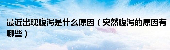 大家好,linda来为大家解答以上的问题。最近出现腹泻是什么原因,突然腹泻的原因有哪些很多人还不知道,现在让我们一起来看看吧!