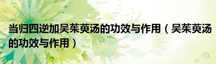 大家好,linda来为大家解答以上的问题。当归四逆加吴茱萸汤的功效与作用,吴茱萸汤的功效与作用很多人还不知道,现在让我们一起来看看吧!