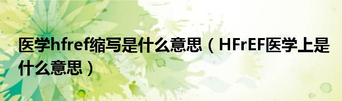 1、HFrEF在临床上代表射血分数降低的心力衰竭,HF代表心力衰竭,R是英文单词reduce的首字母,EF是评价心脏功能的常用指标。心力衰竭是临床上经常提到的一种心力衰竭,即射血分数保存的心力衰竭。