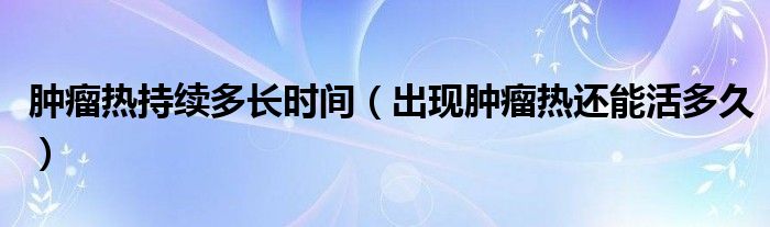 大家好,linda来为大家解答以上的问题。肿瘤热持续多长时间,出现肿瘤热还能活多久很多人还不知道,现在让我们一起来看看吧!