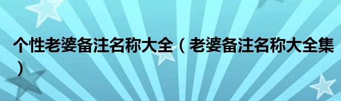 大家好,小晋来为大家解答以下问题,关于个性老婆备注名称大全,老婆备注名称大全集很多人还不知道,今天让我们一起来看看吧!
