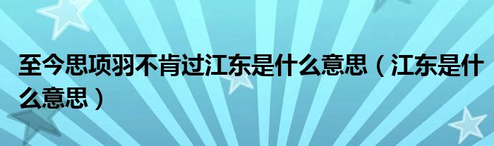 大家好,小晋来为大家解答以下问题,关于至今思项羽不肯过江东是什么意思,江东是什么意思很多人还不知道,今天让我们一起来看看吧!