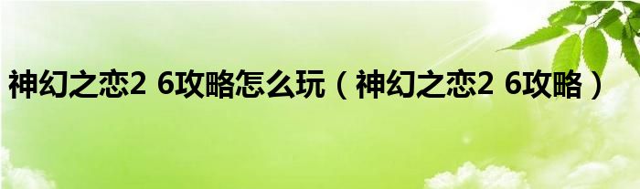 神幻之恋2 6攻略怎么玩(神幻之恋2 6攻略)
