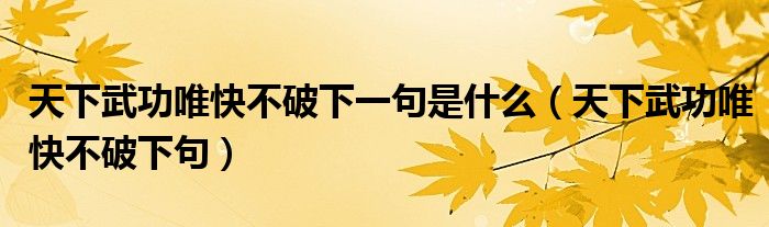 大家好,小晋来为大家解答以下问题,关于天下武功唯快不破下一句是什么,天下武功唯快不破下句很多人还不知道,今天让我们一起来看看吧!