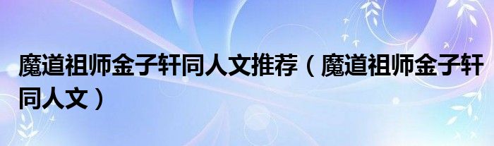 大家好,小晋来为大家解答以下问题,关于魔道祖师金子轩同人文推荐,魔道祖师金子轩同人文很多人还不知道,今天让我们一起来看看吧!
