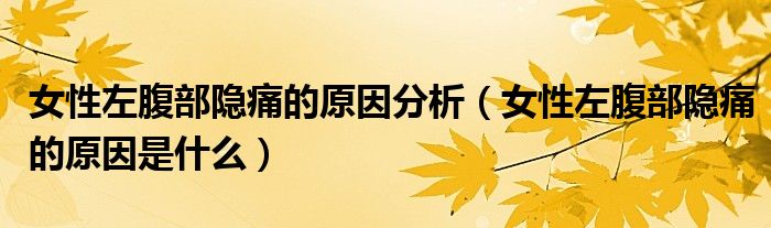大家好,linda来为大家解答以上的问题。女性左腹部隐痛的原因分析,女性左腹部隐痛的原因是什么很多人还不知道,现在让我们一起来看看吧!