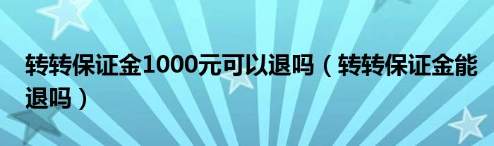 大家好,跳跳为你解答以上问题。转转保证金1000元可以退吗,转转保证金能退吗这个问题很多人还不知道,现在让我们一起来看看吧!