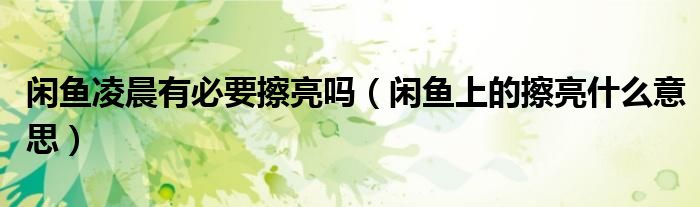 大家好,跳跳为你解答以上问题。闲鱼凌晨有必要擦亮吗,闲鱼上的擦亮什么意思这个问题很多人还不知道,现在让我们一起来看看吧!