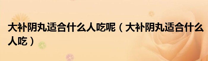 大家好,linda来为大家解答以上的问题。大补阴丸适合什么人吃呢,大补阴丸适合什么人吃很多人还不知道,现在让我们一起来看看吧!