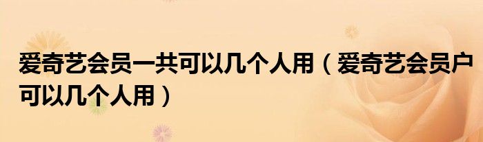 大家好,跳跳为你解答以上问题。爱奇艺会员一共可以几个人用,爱奇艺会员户可以几个人用这个问题很多人还不知道,现在让我们一起来看看吧!