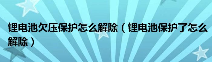 大家好,小叶为你解答以上问题。锂电池欠压保护怎么解除,锂电池保护了怎么解除这个问题很多人还不知道,现在让我们一起来看看吧!