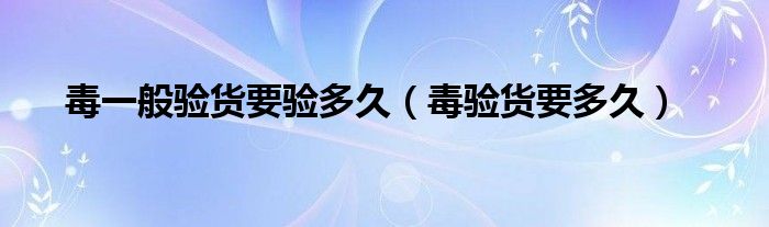 大家好,跳跳为你解答以上问题。毒一般验货要验多久,毒验货要多久这个问题很多人还不知道,现在让我们一起来看看吧!