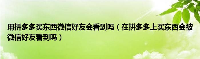 大家好,跳跳为你解答以上问题。用拼多多买东西微信好友会看到吗,在拼多多上买东西会被微信好友看到吗这个问题很多人还不知道,现在让我们一起来看看吧!