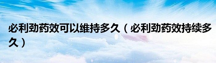 大家好,linda来为大家解答以上的问题。必利劲药效可以维持多久,必利劲药效持续多久很多人还不知道,现在让我们一起来看看吧!