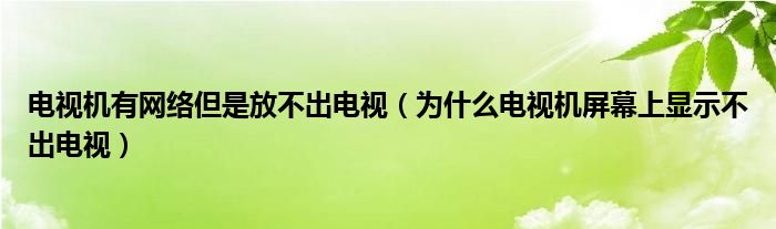 大家好,小叶为你解答以上问题。电视机有网络但是放不出电视,为什么电视机屏幕上显示不出电视这个问题很多人还不知道,现在让我们一起来看看吧!