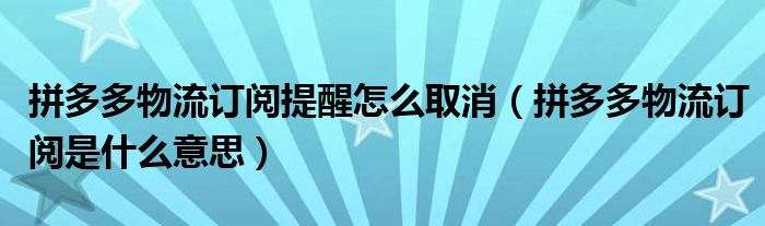 大家好,跳跳为你解答以上问题。拼多多物流订阅提醒怎么取消,拼多多物流订阅是什么意思这个问题很多人还不知道,现在让我们一起来看看吧!