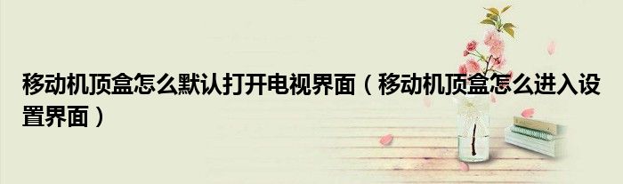 大家好,小叶为你解答以上问题。移动机顶盒怎么默认打开电视界面,移动机顶盒怎么进入设置界面这个问题很多人还不知道,现在让我们一起来看看吧!