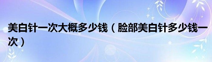 大家好,linda来为大家解答以上的问题。美白针一次大概多少钱,脸部美白针多少钱一次很多人还不知道,现在让我们一起来看看吧!