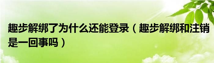 大家好,跳跳为你解答以上问题。趣步解绑了为什么还能登录,趣步解绑和注销是一回事吗这个问题很多人还不知道,现在让我们一起来看看吧!