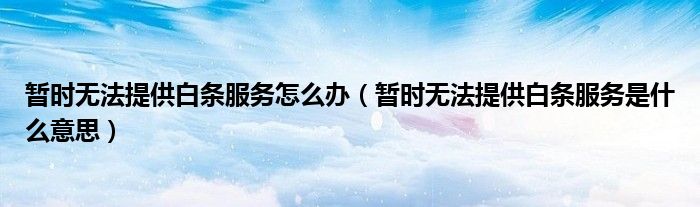大家好,跳跳为你解答以上问题。暂时无法提供白条服务怎么办,暂时无法提供白条服务是什么意思这个问题很多人还不知道,现在让我们一起来看看吧!